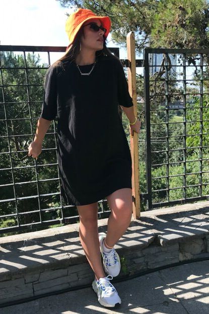 Siyah T Shirt Elbise Modelleri