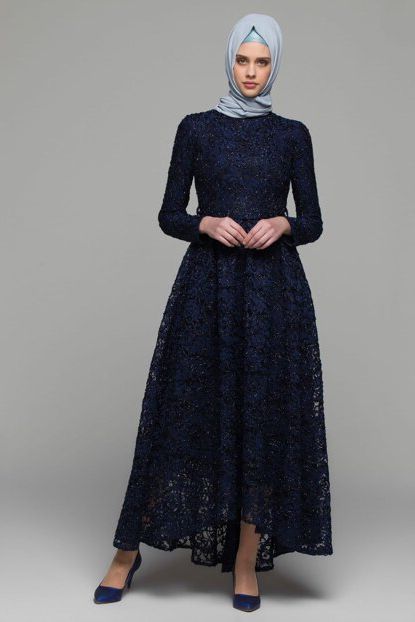 lacivert abiye elbise tesettür Modelleri