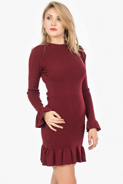 İroni Kadın Bordo Kol Ve Etek Ucu Volanlı Triko Elbise 98162 ... ürününü indirimli fiyatıyla trendyol.com sitesinden satın alabilirsiniz.
