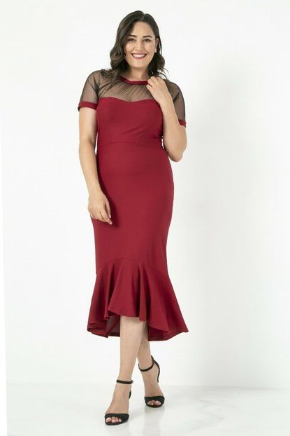 Bordo Eteği Volanlı Elbise Modelleri