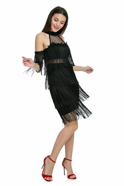 Sateen Kadın Siyah Siyah Omuz Açık Püsküllü Elbise ... ürününü indirimli fiyatıyla trendyol.com sitesinden satın alabilirsiniz.