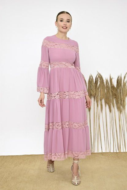 pembe dantel elbise tesettür Modelleri