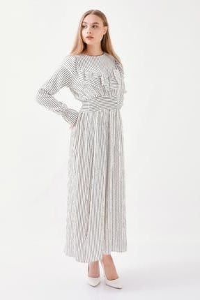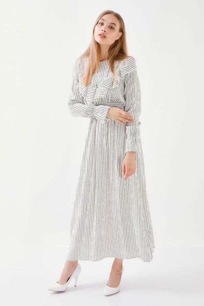 Wathka Kadın Beyaz Volanlı Büzgülü Çizgili Elbise WTH129 ... ürününü indirimli fiyatıyla trendyol.com sitesinden satın alabilirsiniz.
