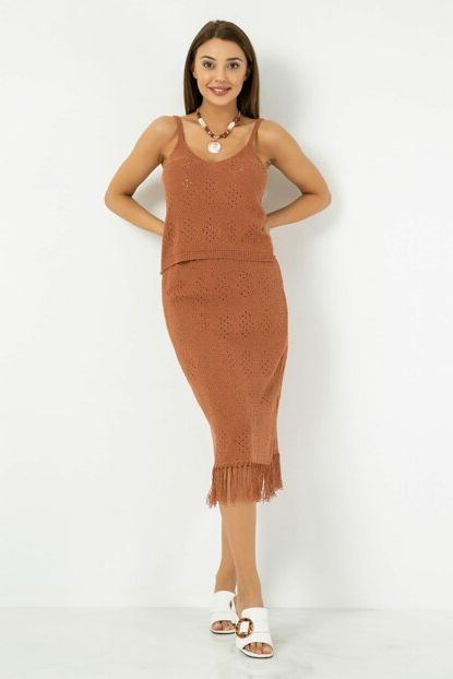 Sateen Kadın Kiremit Püskül Detay Askılı Etek Bluz Takım ... ürününü indirimli fiyatıyla trendyol.com sitesinden satın alabilirsiniz.