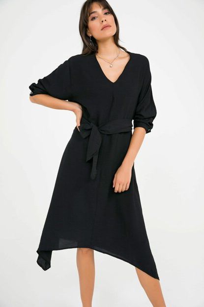 Journey Kadın Siyah Elbise Kavisli Sıfır Yaka, Yarasa Kol ... ürününü indirimli fiyatıyla trendyol.com sitesinden satın alabilirsiniz.