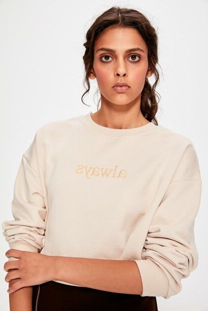 TRENDYOLMİLLA Bej Nakışlı ve Şardonlu Crop Örme Sweatshirt ... ürününü indirimli fiyatıyla trendyol.com sitesinden satın alabilirsiniz.