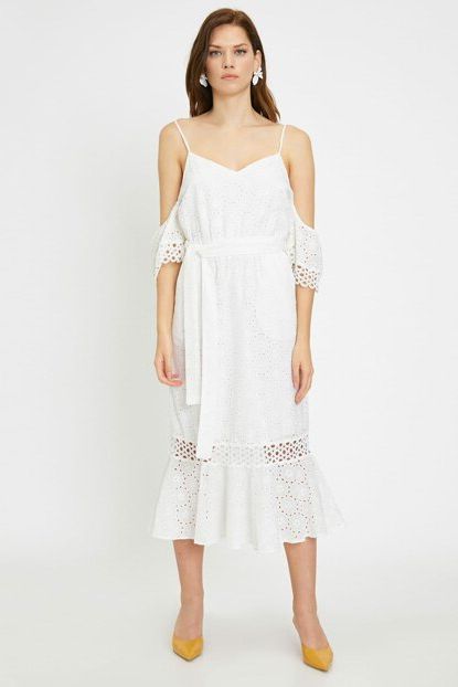 Koton Kadın Beyaz Askılı Omzu Açık Kısa Kollu Midi Dantel ... ürününü indirimli fiyatıyla trendyol.com sitesinden satın alabilirsiniz.