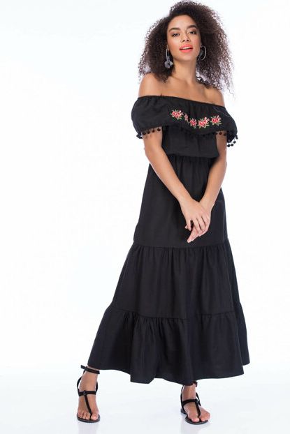 Kadın Siyah Madonna Çiçek Desen Ponpon Yaka Maxi Elbise ... ürününü indirimli fiyatıyla trendyol.com sitesinden satın alabilirsiniz.