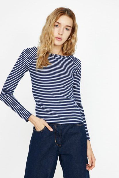 Kadın Mavi Çizgili T-Shirt 9KAL11556JK Koton | Trendyol ürününü indirimli fiyatıyla trendyol.com sitesinden satın alabilirsiniz.
