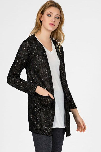 Cotton Mood Kadın Siyah Pullu Cepli Hırka 9051367 | Trendyol ürününü indirimli fiyatıyla trendyol.com sitesinden satın alabilirsiniz.