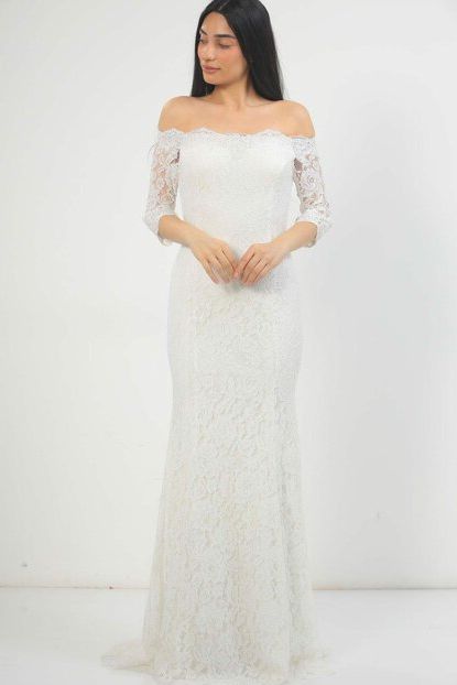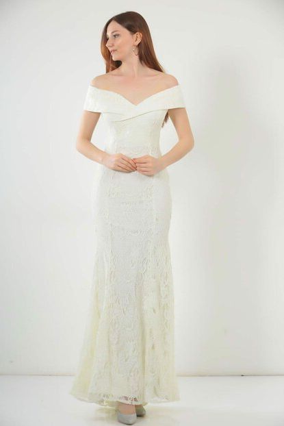 Beyaz Kayık Yaka Abiye Modelleri