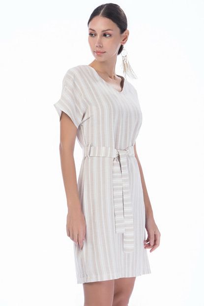Kadın Bej Keten Çizgili V Yaka Yarasa Kol Kısa Elbise ... ürününü indirimli fiyatıyla trendyol.com sitesinden satın alabilirsiniz.