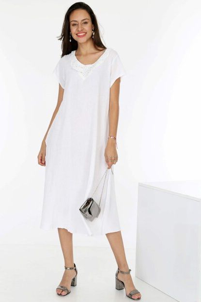 Kadın Beyaz Önü Dantel Detaylı Midi Boy Yarım Kollu Elbise ... ürününü indirimli fiyatıyla trendyol.com sitesinden satın alabilirsiniz.
