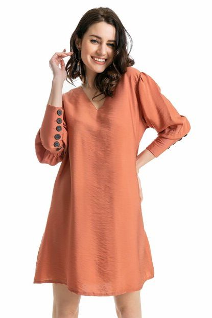 Kadın Kiremit Düğmeli Balon Kol Elbise 9YEL698K106 Sateen ... ürününü indirimli fiyatıyla trendyol.com sitesinden satın alabilirsiniz.