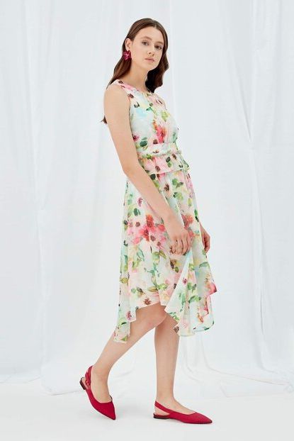 Kadın Pudra Çiçekli Sıfır Yaka Beli Büzgülü Volanlı Altı ... ürününü indirimli fiyatıyla trendyol.com sitesinden satın alabilirsiniz.