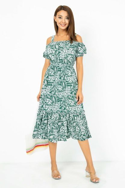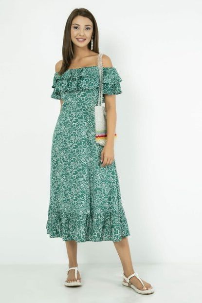 Yeşil Düşük Omuz Midi Elbise 9YEL443K166 Sateen | Trendyol ürününü indirimli fiyatıyla trendyol.com sitesinden satın alabilirsiniz.