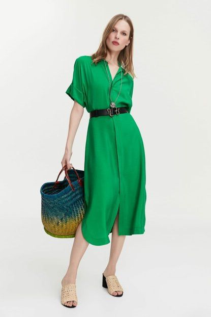 Yeşil Önü Düğmeli Midi Elbise 9YEL781K117 Sateen | Trendyol ürününü indirimli fiyatıyla trendyol.com sitesinden satın alabilirsiniz.