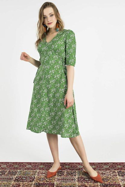 Çiçek Desenli Yeşil Midi Elbise 9YEL239K195 Sateen | Trendyol ürününü indirimli fiyatıyla trendyol.com sitesinden satın alabilirsiniz.