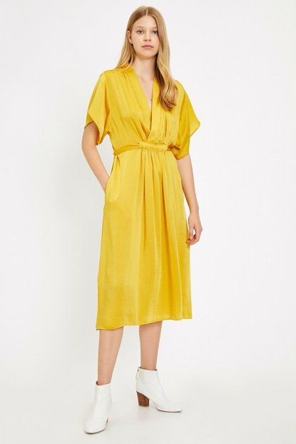 Koton Kadın Sarı V Yaka Kısa Kollu Beli Bağlamalı Midi ... ürününü indirimli fiyatıyla trendyol.com sitesinden satın alabilirsiniz.