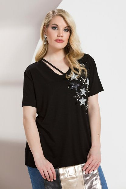 RMG Kadın Siyah Pul Payetli Büyük Beden T-Shirt 6395, | Trendyol ürününü indirimli fiyatıyla trendyol.com sitesinden satın alabilirsiniz.