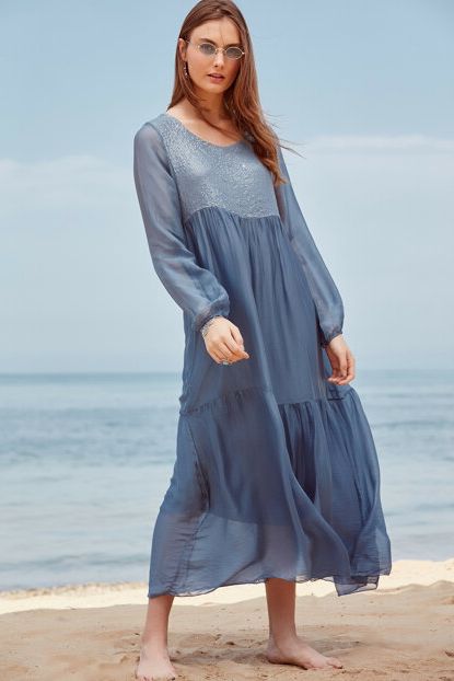 Y-London Kadın Mavi İtalyan Ön Pul İşlemeli İpek Elbise T ... ürününü indirimli fiyatıyla trendyol.com sitesinden satın alabilirsiniz.