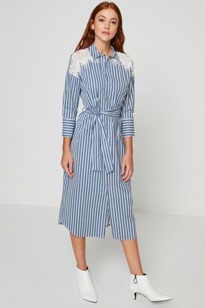 Koton Kadın Lacivert Çizgili Elbise 9YAK88616PW | Trendyol ürününü indirimli fiyatıyla trendyol.com sitesinden satın alabilirsiniz.