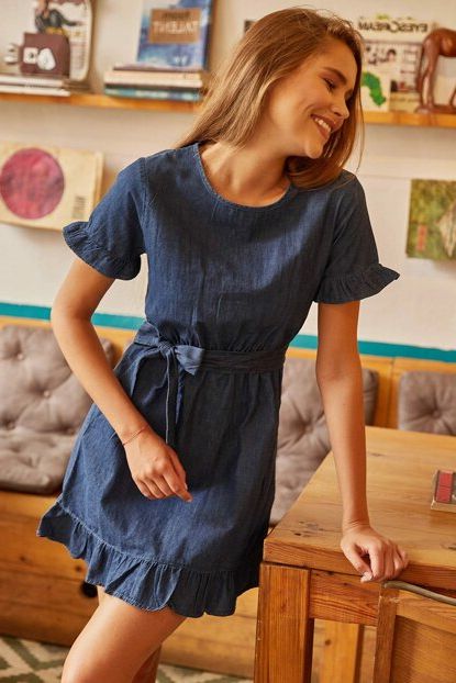 Kadın Koyu Mavi Sırtı Fermuarlı Kuşaklı İnce Denim Elbise ... ürününü indirimli fiyatıyla trendyol.com sitesinden satın alabilirsiniz.