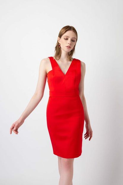 Kadın V Yaka Askılı Şık Elbise 10690063_KIRMIZI Rue | Trendyol ürününü indirimli fiyatıyla trendyol.com sitesinden satın alabilirsiniz.