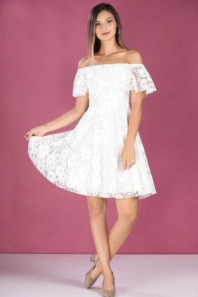 Ekru Omuz Açık Kısa Dantel Elbise 9YEL832K143 Sateen | Trendyol ürününü indirimli fiyatıyla trendyol.com sitesinden satın alabilirsiniz.